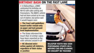 छत्तीसगढ़ हाईकोर्ट ने इस सप्ताह राज्य में लगातार बढ़ रही सड़क पर स्टंटबाज़ी, ट्रैफिक नियमों की अनदेखी और हाईवे पर जन्मदिन मनाने जैसी घटनाओं पर तीखी टिप्पणी की है। कोर्ट ने कहा कि “राज्य प्रशासन अमीर और प्रभावशाली लोगों की ऐसी हरकतों पर बेबस और नाकाम दिखाई दे रहा है”